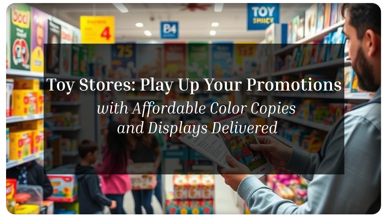 Ready to take your toy store to the next level? Start by exploring our range of color copies, posters, and B&W printing options. Visit 55printing.com today and use code TOYPRINT5 for 5% off your first order. Don’t wait—your next big promotion is just a print away.