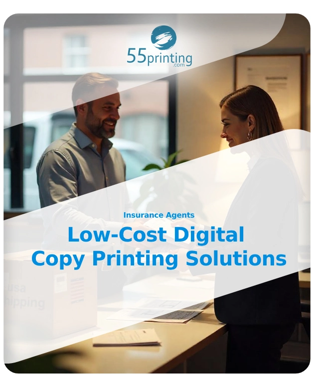 Let’s wrap this up: Insurance agents swim in a sea of slim margins and high stakes, and low-cost digital copy printing is your lifeboat. B&W forms at 5¢ a page keep your paperwork tight, while color flyers at 25¢ max sell policies like hotcakes—all without sinking your funds. Whether you’re churning out client docs or plastering promos, this approach keeps you nimble and frugal. Plus, with 55printing.com delivering to your USA doorstep, you’re never more than a few days from a win.