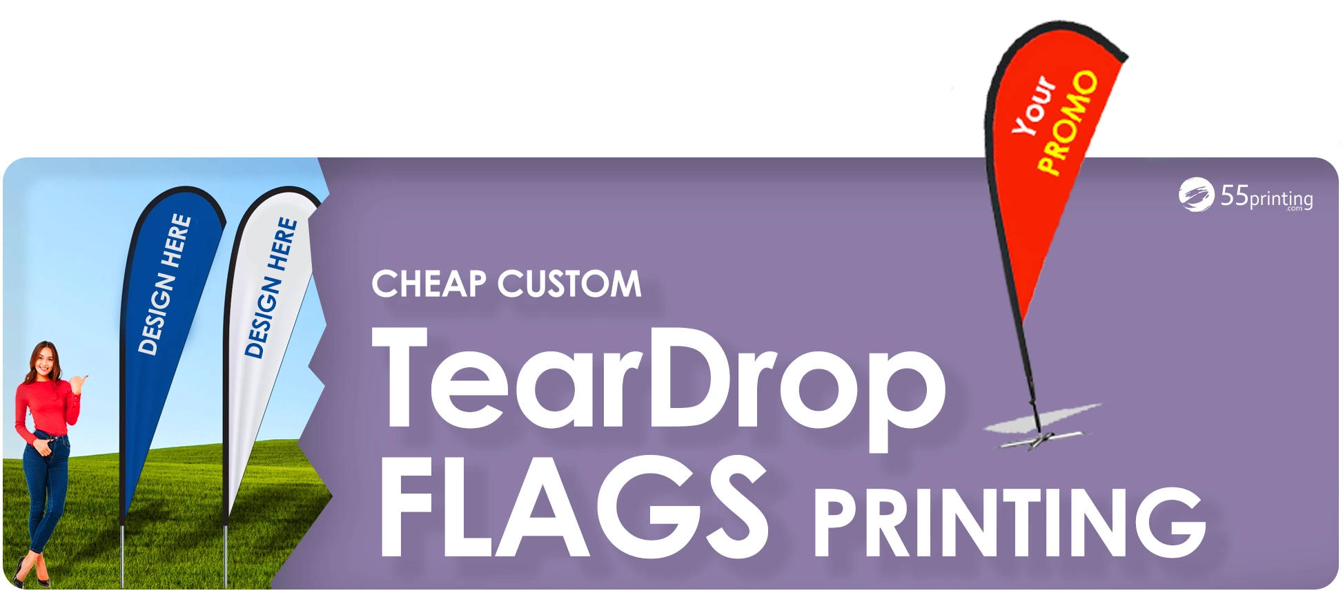 Transform your marketing today with the power of custom teardrop flags from 55Printing.