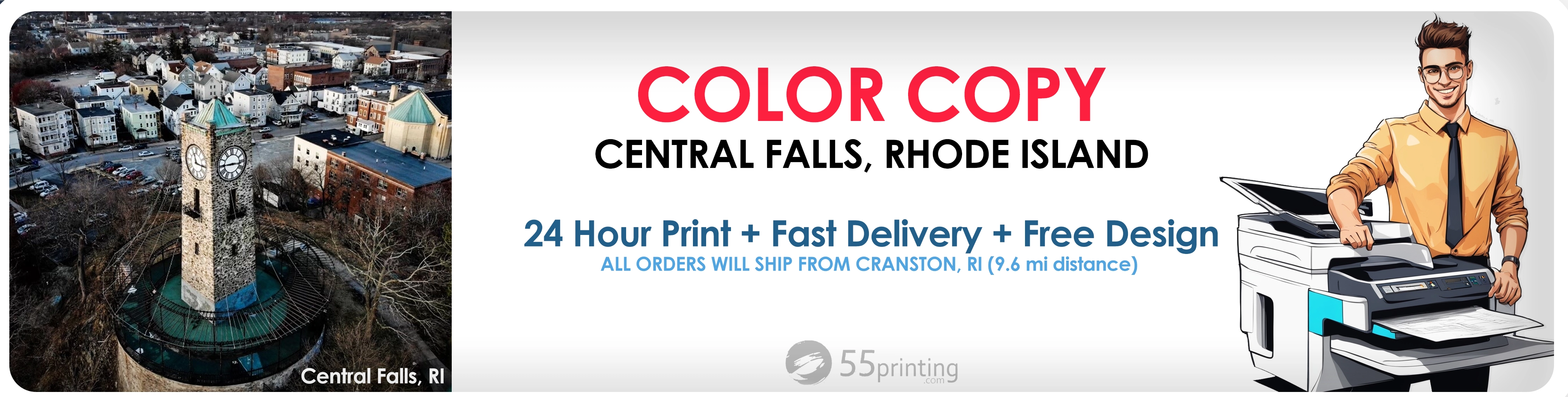 Welcome to our comprehensive guide on color copy services in Central Falls, Rhode Island brought to you by 55Printing. Our advanced printing facility in Cranston is dedicated to delivering premium document printing and vibrant color copying services to the residents and businesses of Central Falls, Rhode Island.