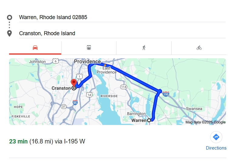 Directions from Cranston to Warren for Printing Needs