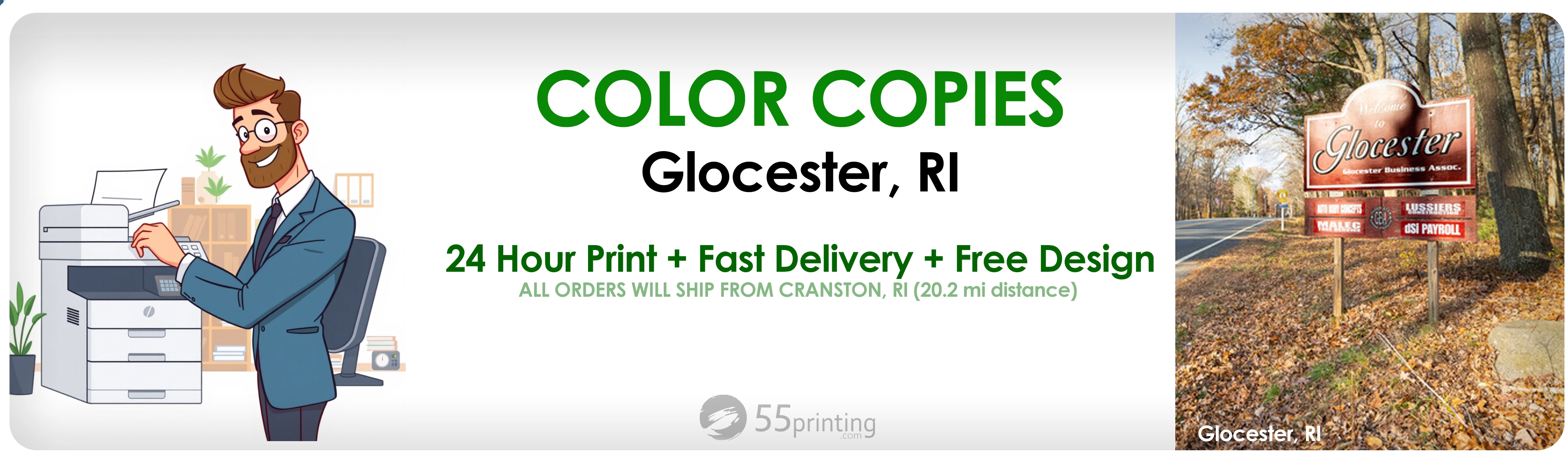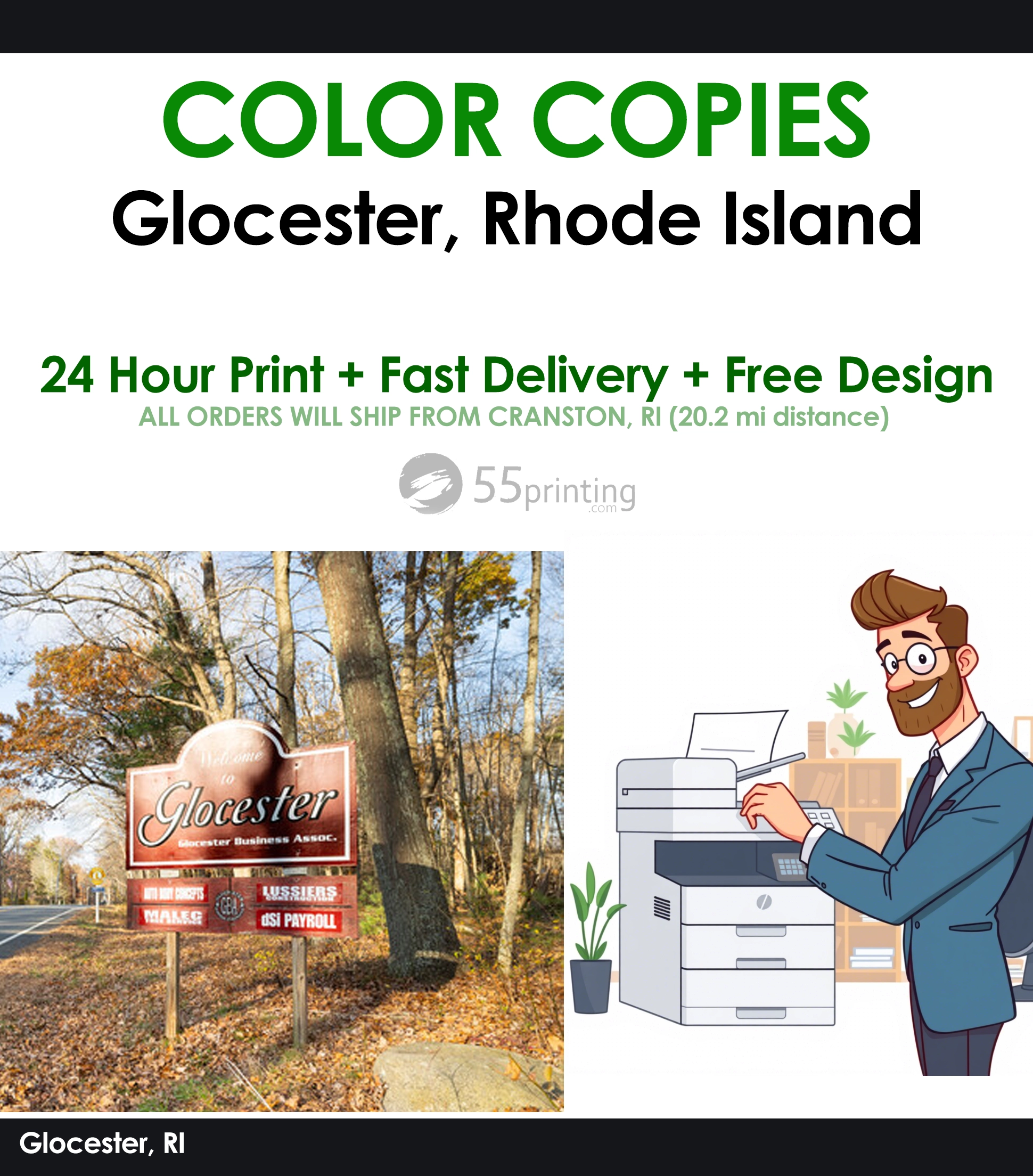 Glocester, RI Express Printing – 1-Day Color & B/W Copies by 55Printing