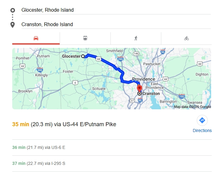- Use major routes such as I‑95 and local connectors for a direct trip from Cranston to Glocester.