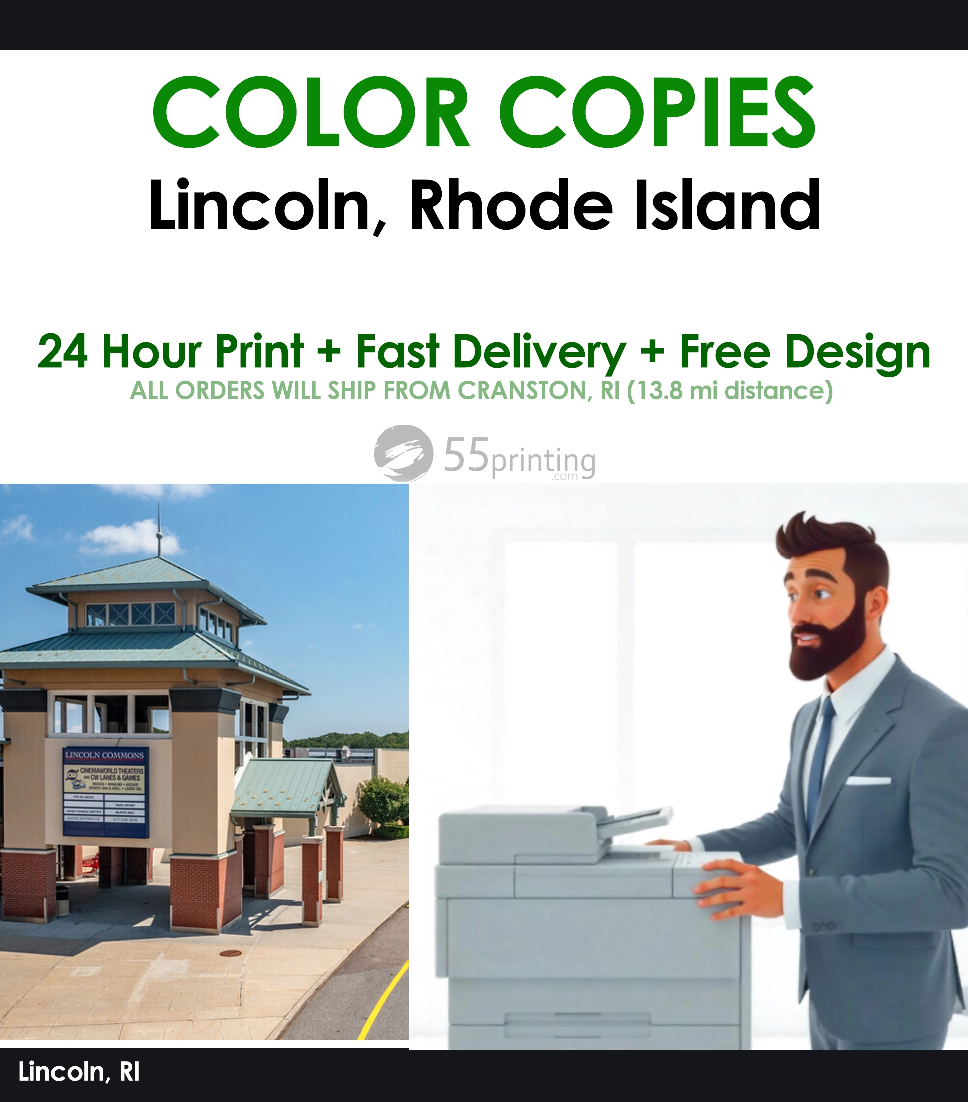While our main printing facility is located in Cranston, RI, our express 1-day delivery service is designed to serve the Lincoln area with unmatched efficiency. The short distance between Cranston and Lincoln ensures that your prints are processed and delivered promptly, without unnecessary delays.
