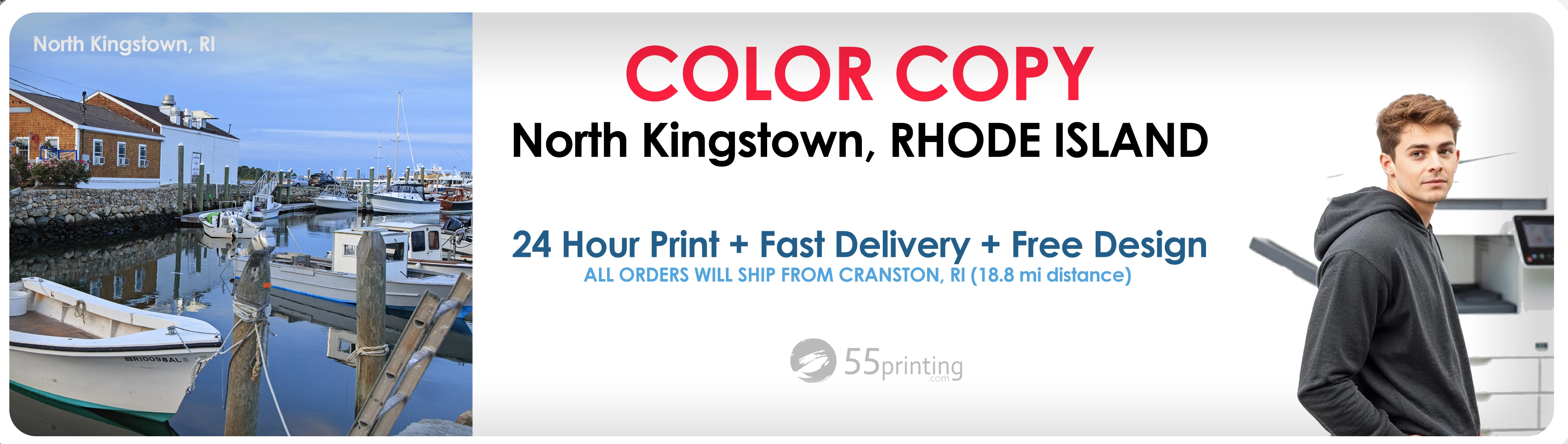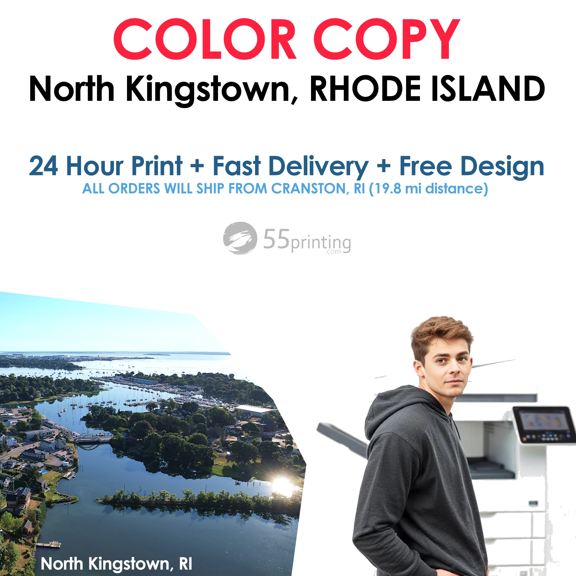 1. How fast is delivery? Our same-day color copies North Kingstown and quick color copies North Kingstown are ready fast, with standard 1-day delivery to North Kingstown.