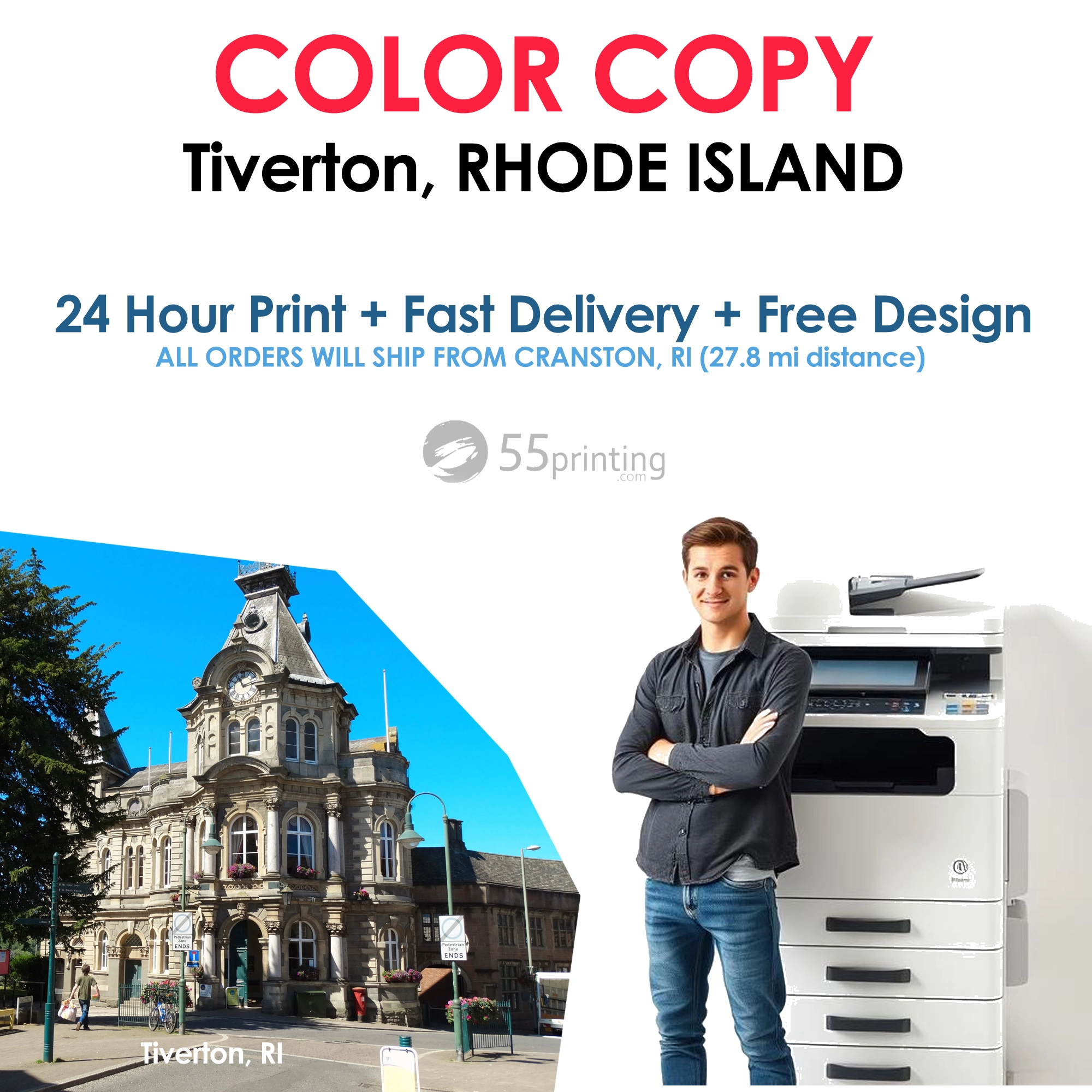 Discover top-tier color and black & white copies in Tiverton, RI, with 55printing’s fast 1-day delivery from Cranston, RI. Whether you need vibrant flyers or crisp handouts, our affordable, high-quality services cater to Tiverton’s businesses, schools, and events. Located just 20-25 miles away, we ensure your prints arrive quickly without compromising excellence.