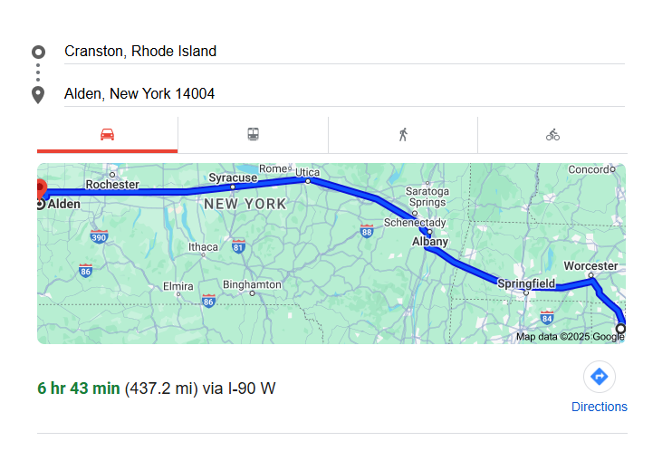 Driving & Shipping Times from Cranston, RI to Alden, NY
