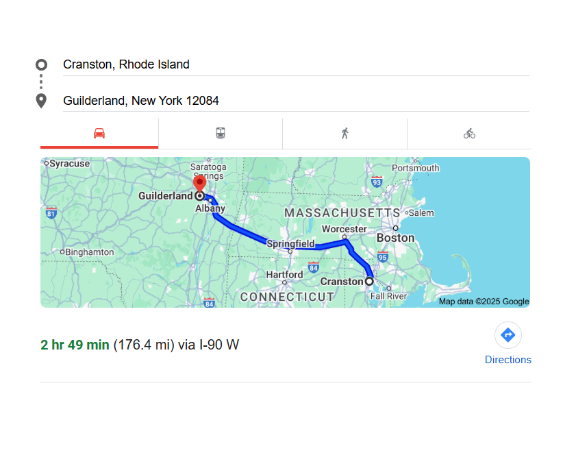 Navigating the Route – From Cranston, RI to Guilderland, NY