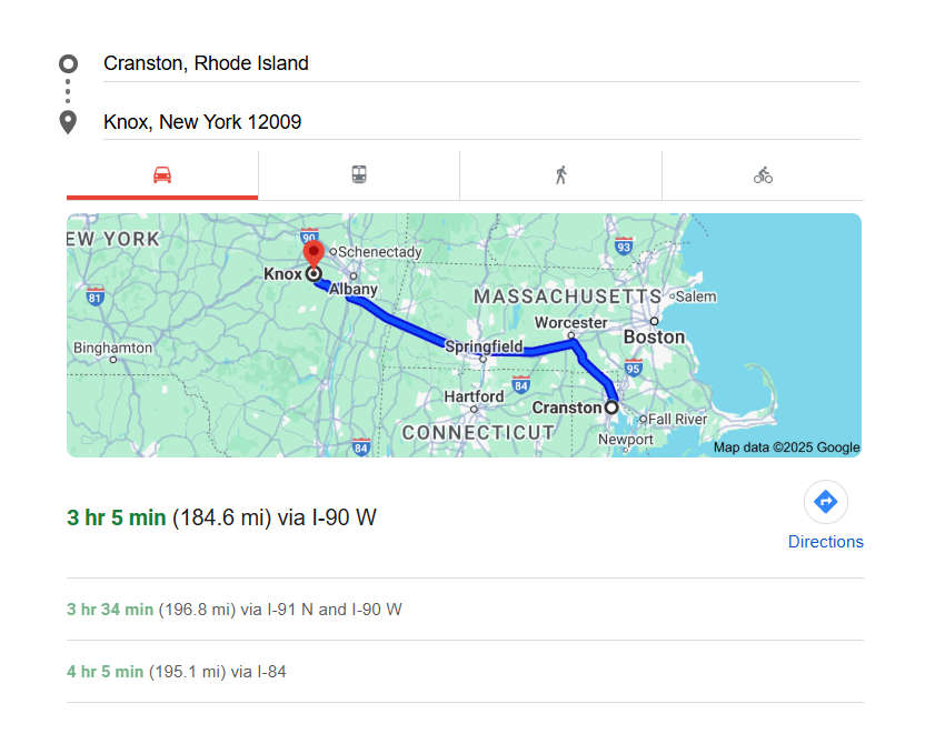 1. Journey from Cranston, RI to Knox, NY – A Time & Transit Guide