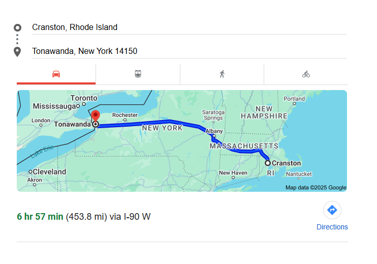 | Method | Estimated Time (Tonawanda, NY from Cranston, RI) | Details |