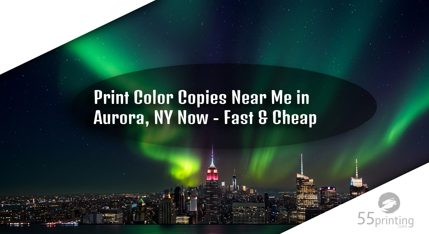 Local printing can lag—small shops in Auburn (15 miles away) might be swamped or out of stock. Online, 55Printing turns it around fast, shipping from Cranston to your doorstep quicker than you can say “Cayuga Lake sunset.” Time’s money, and Aurora’s got no time to lose.