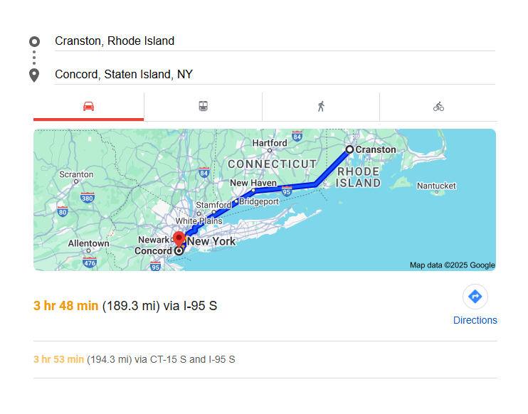 Shipping Times from Cranston, RI to Concord, NY